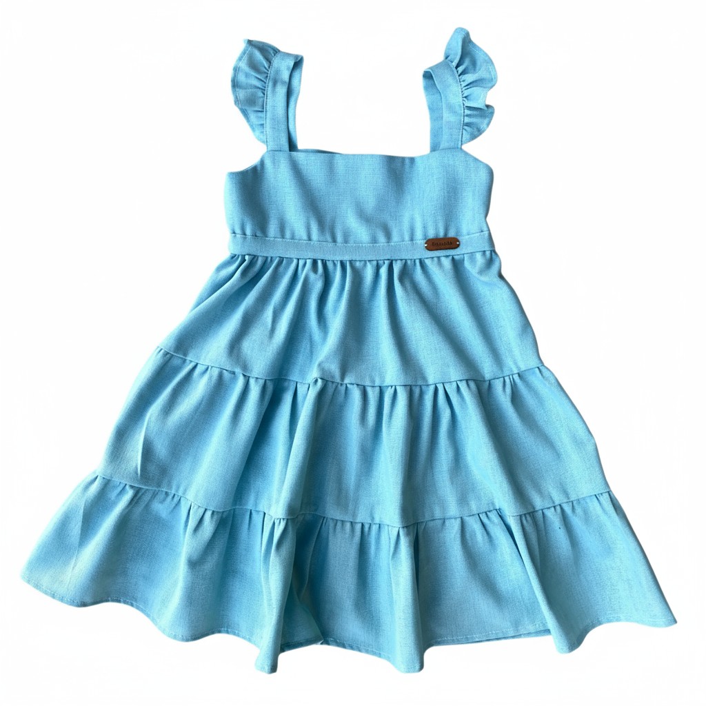 Encante-se com este vestido infantil rosa, feito em linho leve e respirável, ideal para os dias mais quentes. O design delicado conta com alças com babados e uma saia em camadas franzidas, que garantem movimento e charme em cada passo.